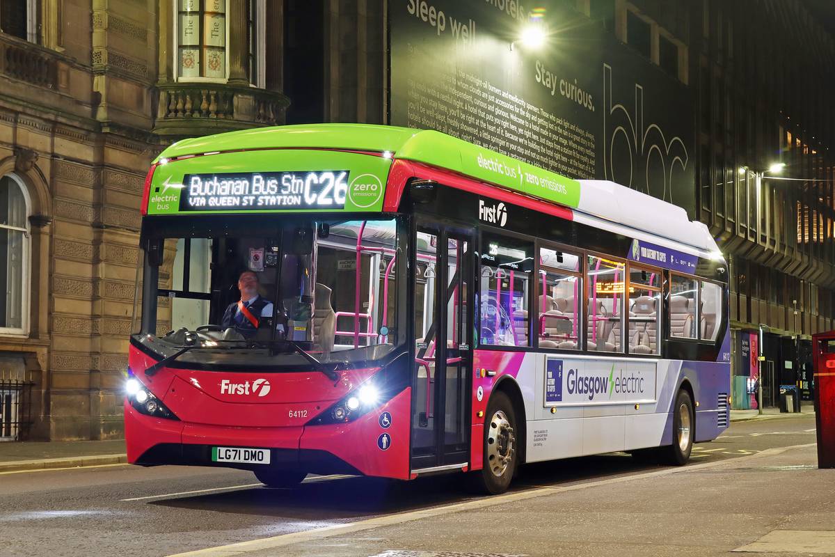 One of the 22 First Glasgow’s BYD ADL Enviro200EV eBuses providing COP26 delegate shuttle service in Glasgow (Source: Alexander Dennis Limited / Keith McGillivray)